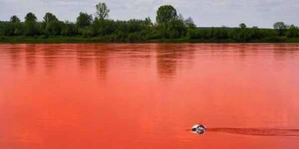 在聖經裡也提到海水和江水變紅的現象,啟示錄裡的末日災難預言中,約翰聽見有大聲音從殿中出來,向七位天使說,你們去,把盛神大怒的「七碗」倒在地上。(啟示錄16章)