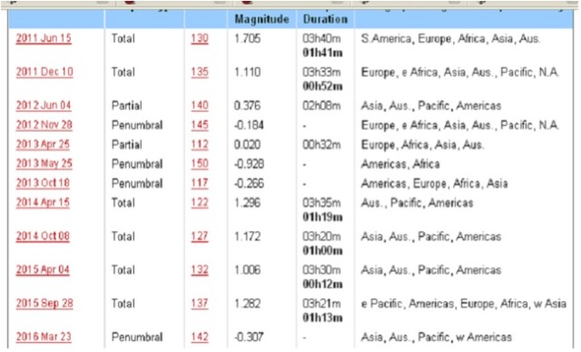 自古以來,以色列人的拉比已經知道,當日食出現在以色列的節期時,世界就會發生災難和重大事件, 而月食出現在以色列的節期之時,以色列就會發生災難和重大事件。