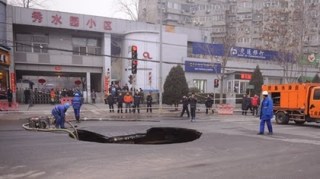 北京路面突塌 現5公尺深天坑 February 17, 2014