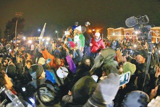 美國密蘇裡州弗格森市(Ferguson)白人警員槍殺黑人青年案,大陪審團週一晚裁定由於證據不足,不會起訴涉案警員。弗格森市黑人社區隨即爆發騷亂,示威民眾焚燒警車、建築物,趁火打劫,市內傳出數百下槍聲,須實施航空管制,逾八十人被捕。怒火蔓延各地,民眾抗議警察濫權及反種族歧視,紐約民眾更佔領了三條大橋,掀起全美新一輪示威浪潮。