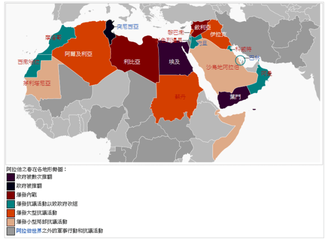 2, 而發生政權更迭的國家是突尼斯和埃及。