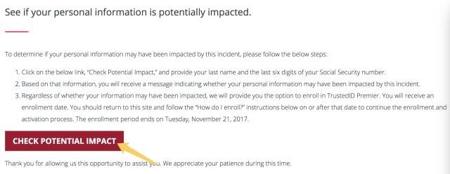 進入後,再點擊“Check Potential Impact”,提交自己的姓名和SSN的後6位數,查詢自己的信息是否被洩露。