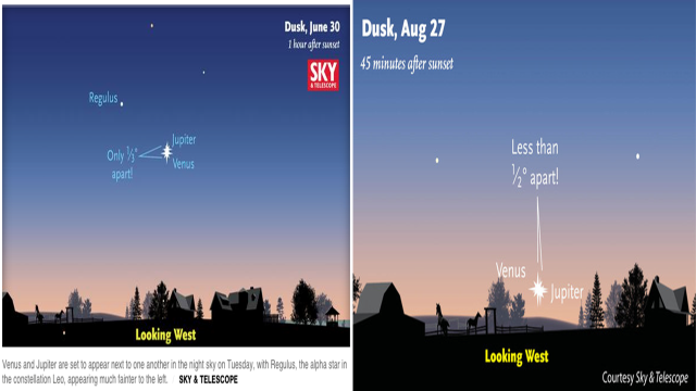 2016年8月27日, 《聖經》伯利恆之星再現。 金星和木星會在日落的天空中聚合,兩顆星近得少於0.07度的距離。金星與木星近乎重疊。金星與地球的距離, VENUS 1億4千4百萬里。木星JUPITER 與地球的距離更要多4倍。2016年8月27日,金星接近滿圓。