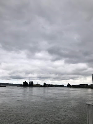 而我们在傍晚到达温哥华主要的河流交汇处—–新西敏码头水域(主要权势是鸱吻的表亲) ,天上还下起了小雨,河岸上面的天空也是乌云密布。围绕,河岸线的,周围的天象呢也是乌云密布。 就在我们处理完河流交汇处之后,雨没有停,然而乌云散去, 被赶到海岸线的另外一端,天空奇迹般的明亮起来。白云和光,将天际染白,白云布满在整个海岸线 。这些完全违反自然界 规律的天象呢,一直伴随我们处理完所有的黑暗权势。那一整天,神,神的天使与我们同在,非常的明显。