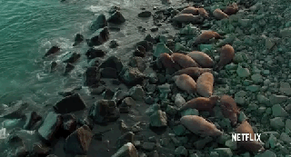 又例如失去海上浮冰的海像,只能爬上海岸或悬崖,一批又一批的海像,因失去栖息地而丧生。