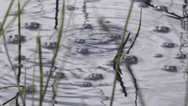 在由冰水融化而成的湖泊中,甲烷就这样冒着泡,从湖水中源源不断地涌出……