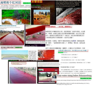 等到Planet X回来时会引起水变血的事情。这些都是我们摘抄的一些世界各地的新闻,从2009年就已经有了。它是满含铁离子的一个星球,所以它靠近时,风一吹,雨水一来,它的铁离子就直接刷到江河湖海去了,满地都是血红的水。这就是对在出埃及记里当时发生的事情的科学解释。