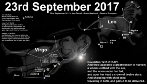 2017年9月23号这一个天文奇迹出现了,这一天正好是犹太历的吹角节。