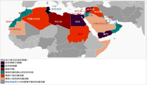 还有一些是Zheng权更迭的国家,这些颜色都在上面。埃及、突尼斯是民族运动,是一样的。