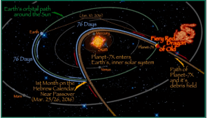 这个Planet-x行星引力很大,所以吸引拖拽着很多小的陨石碎片。当地球进入它的轨道附近时,就会出现大规模的陨石撞击地球。当它跨过地球轨道,陨石撞击地球,就会引发洪水海啸,这样经历五个月直到它离开太阳系。