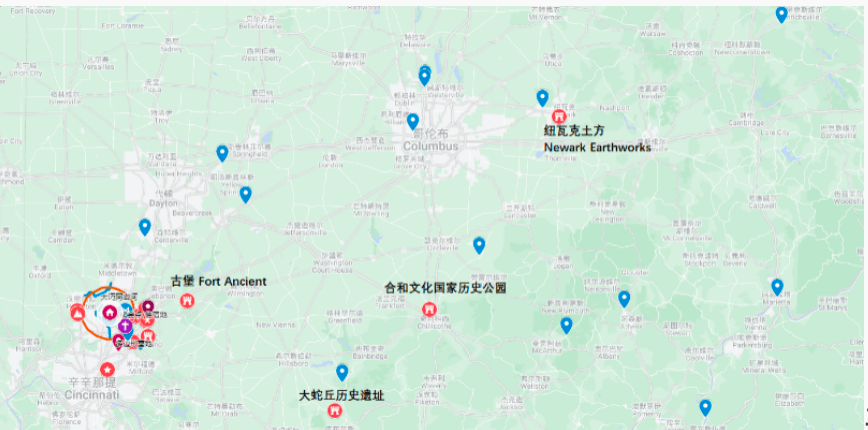 例如:俄亥俄州合和文化历史公园里的霍普顿土方,合和土墩 ,云杉山土方等。